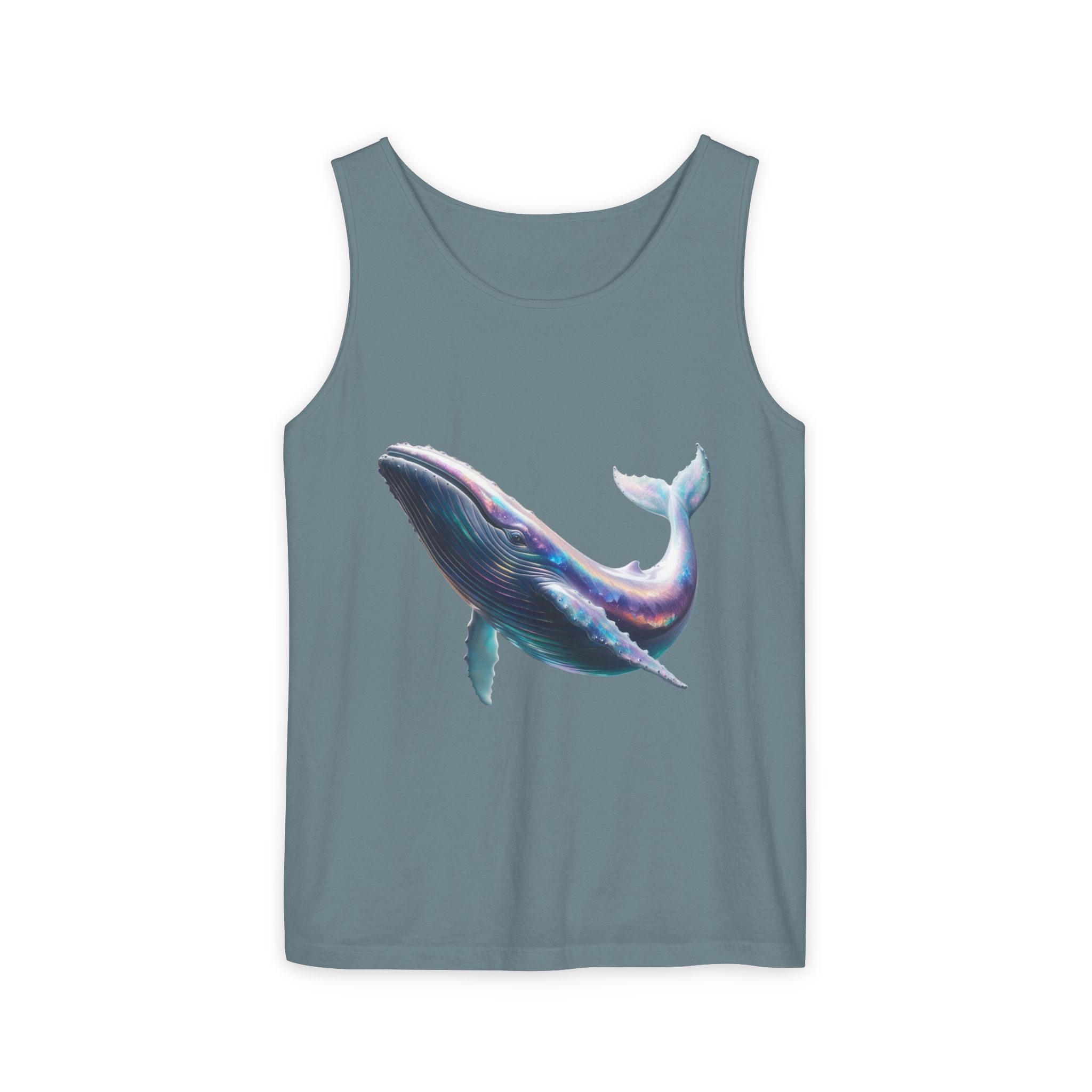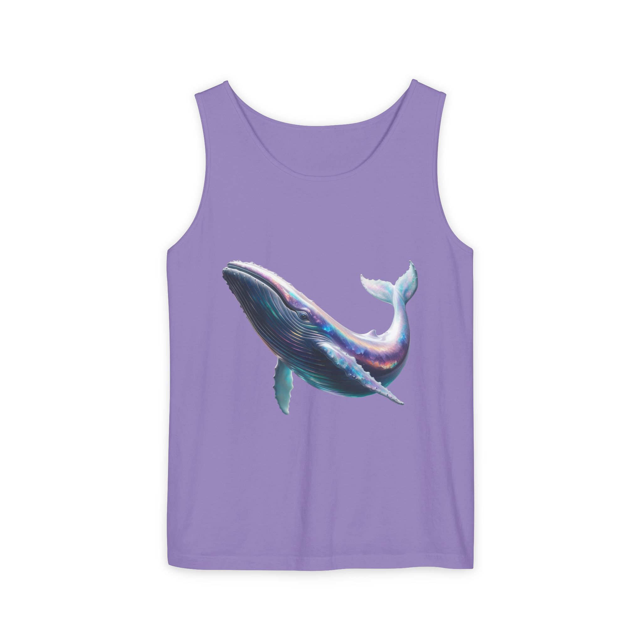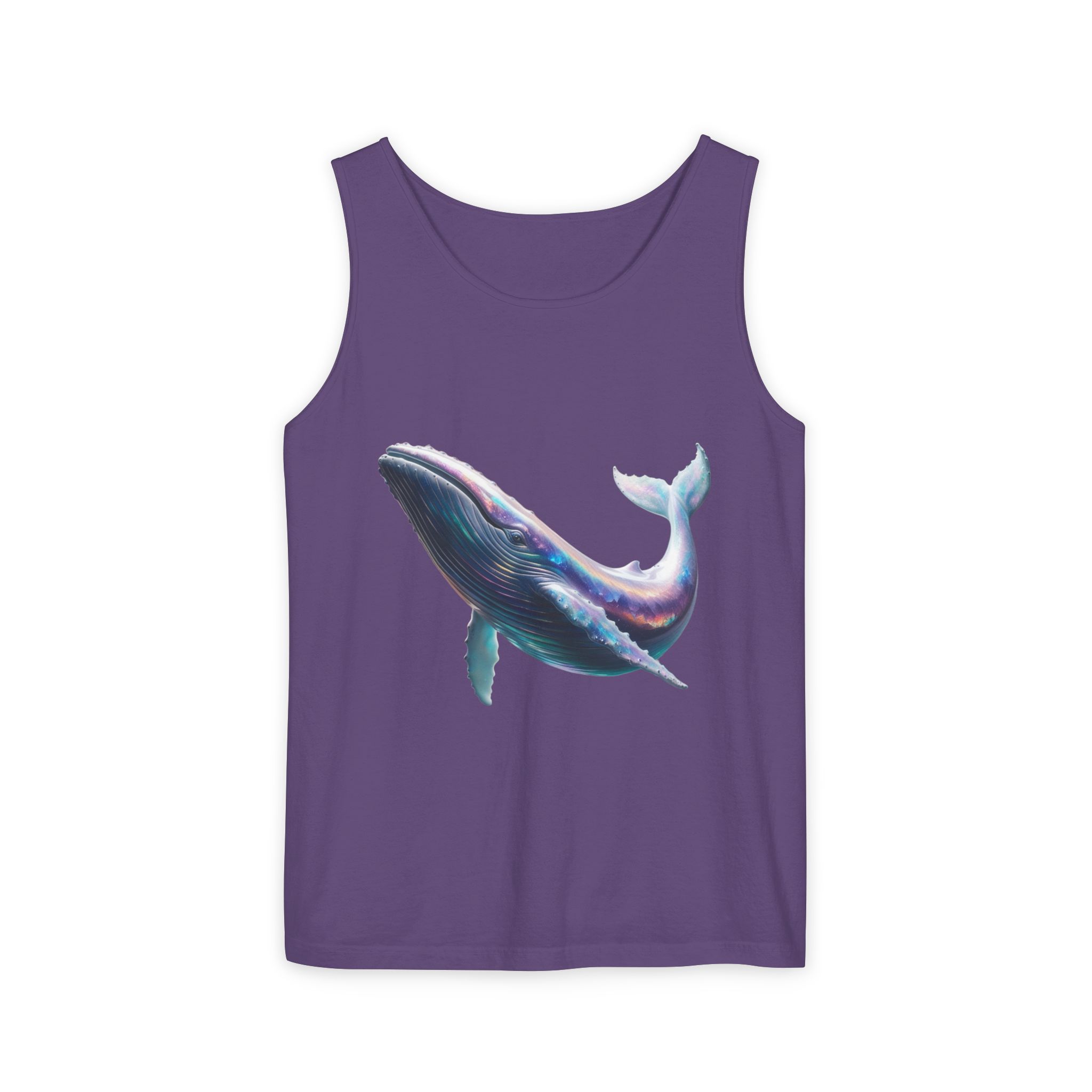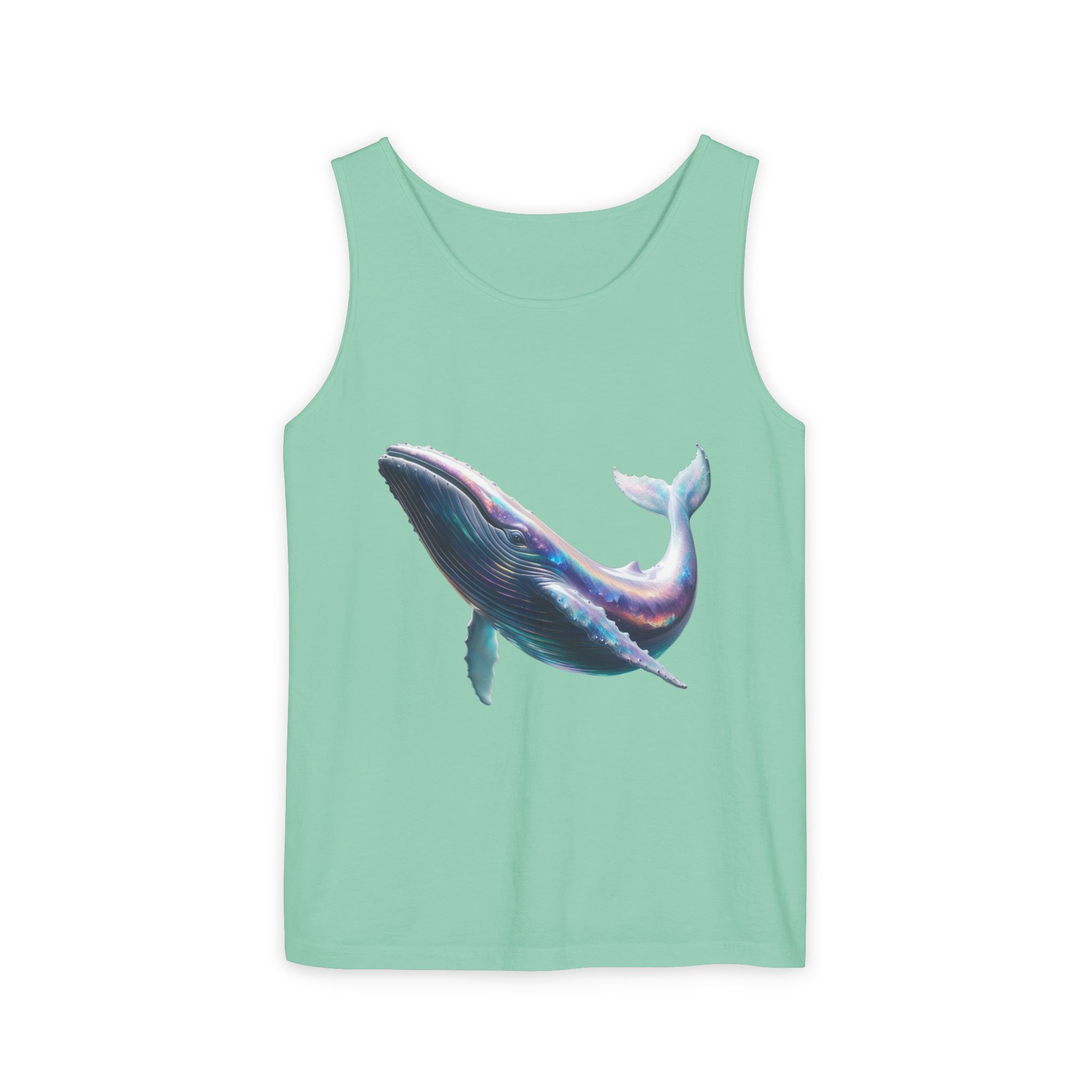 This tank top features a minimalist design with the phrase ‘ballena libre’. It exudes a laid-back and carefree vibe, perfect for casual wear during summer days or beach outings. It is relevant to individuals who appreciate simple and stylish apparel. This tank top is suitable for beach vacations, summer festivals, and casual outings.